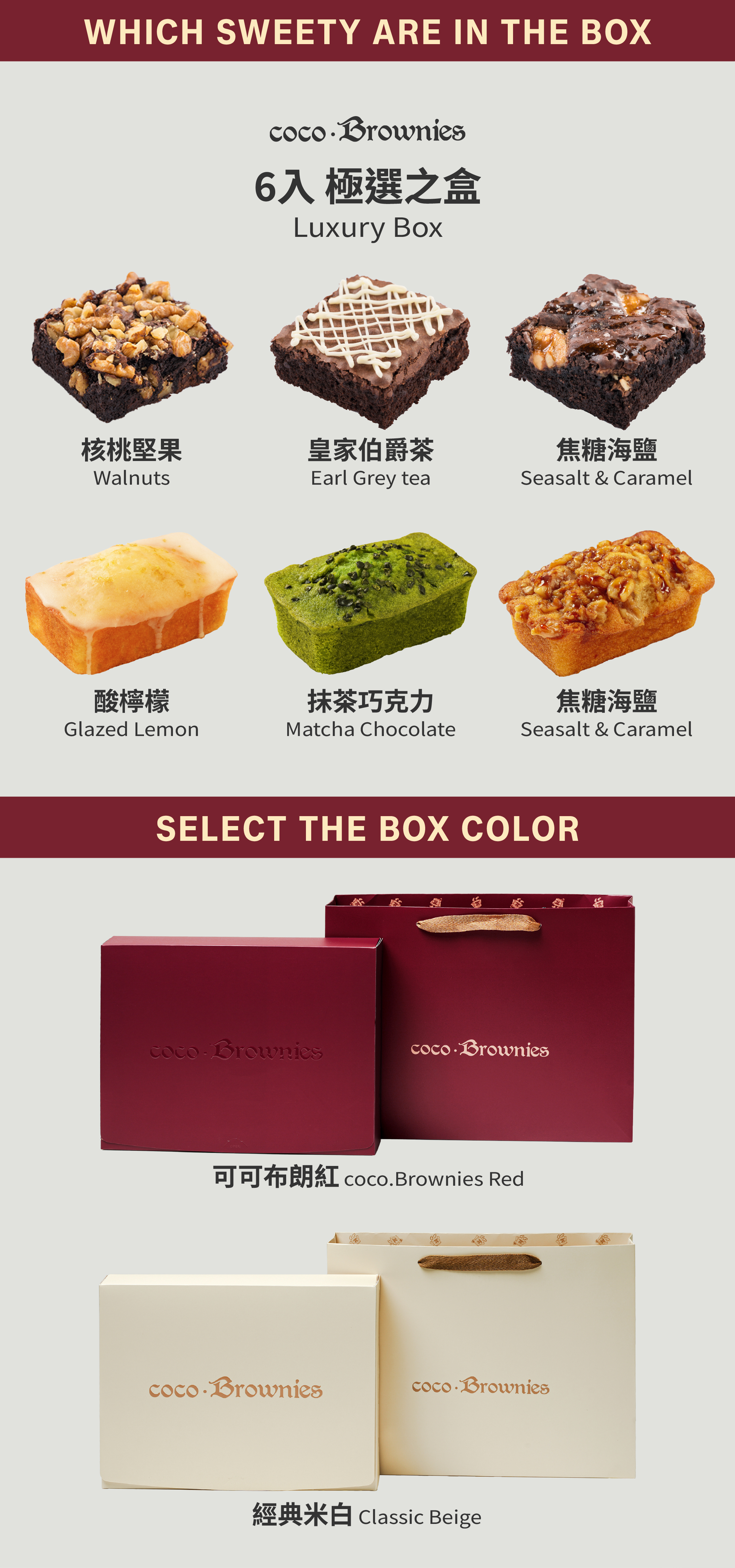 招牌可可布朗尼+超人氣磅蛋糕,是讓你一次滿足的極選之盒!