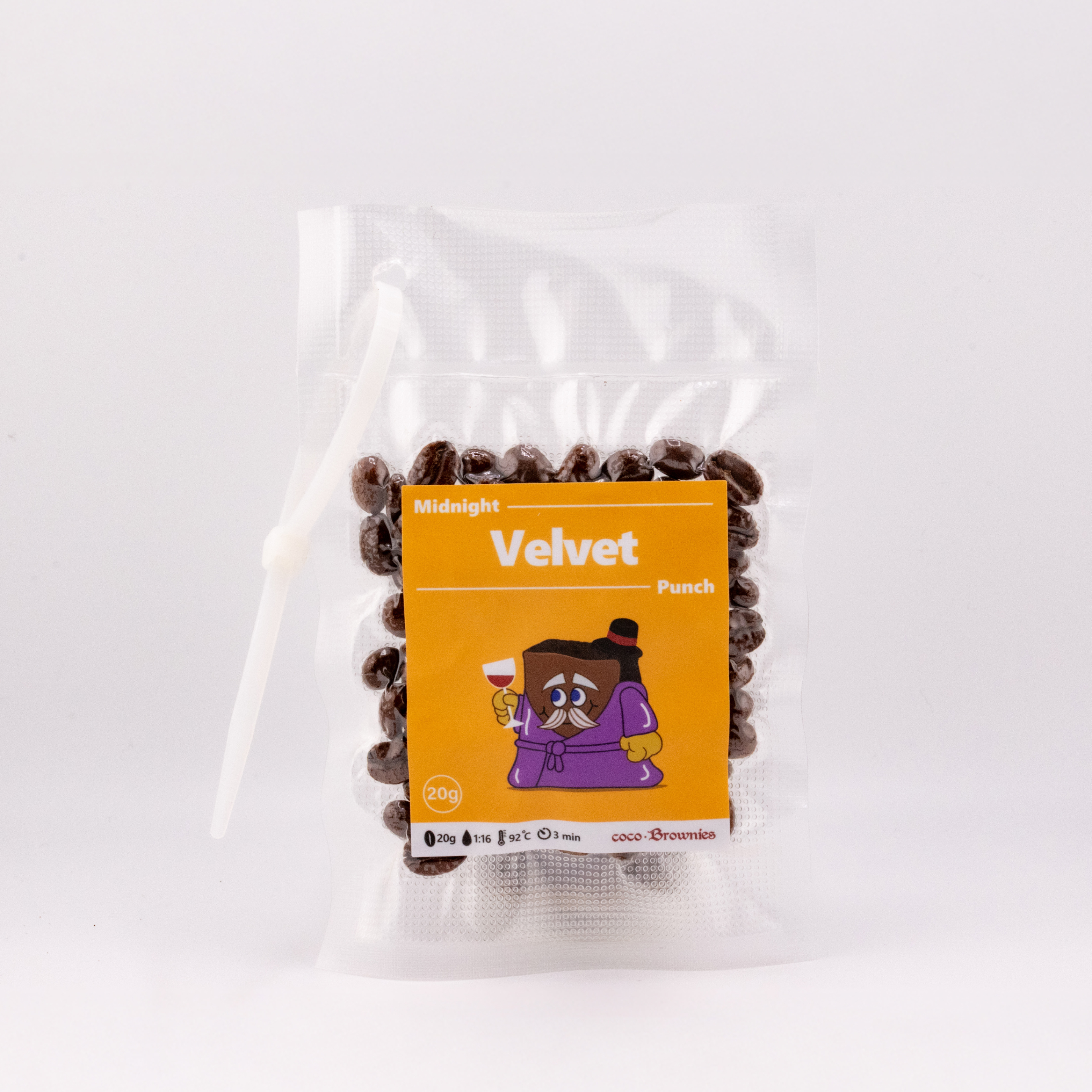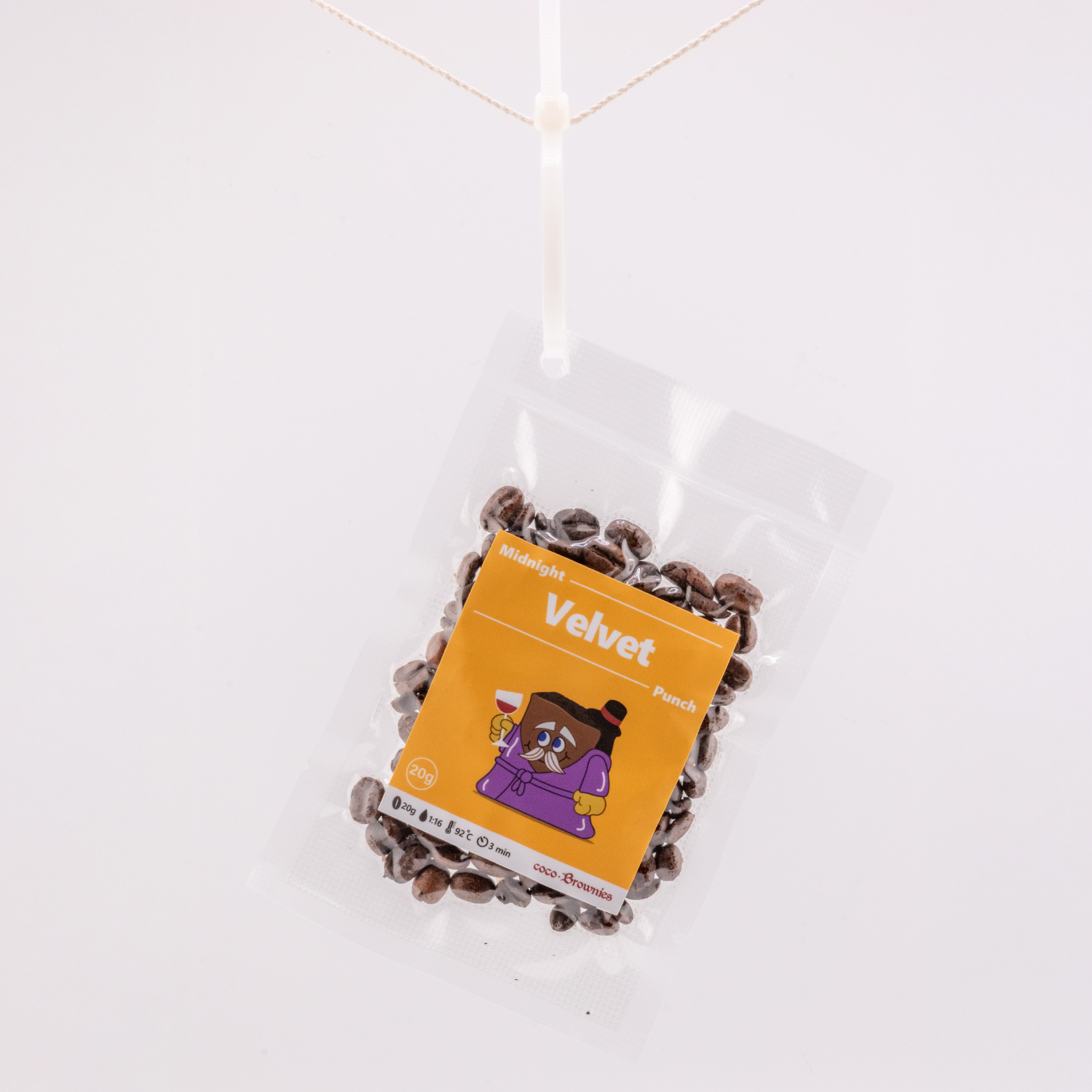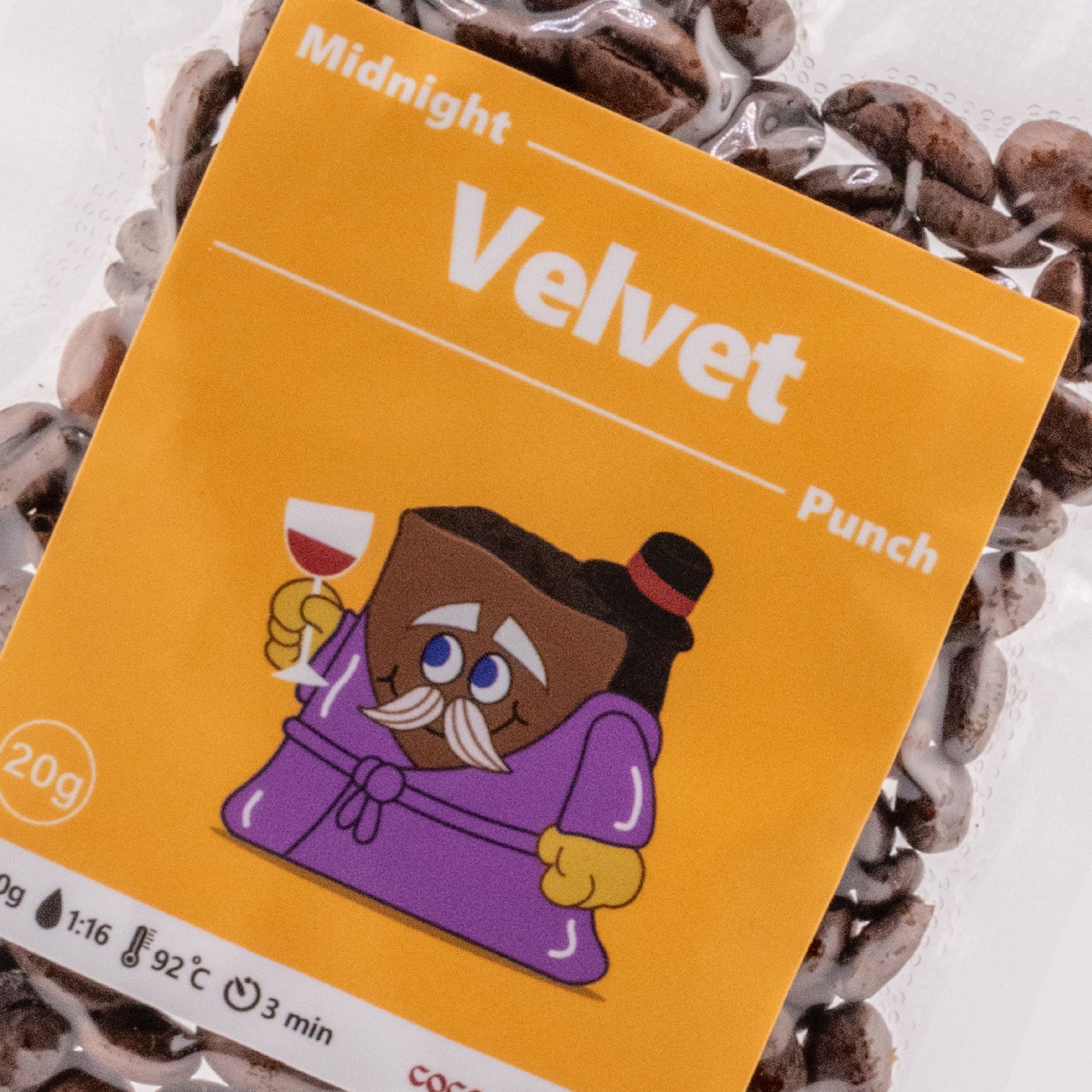 濃烈又滑順,「午夜絲絨重擊」是一款帶有深沉可可香氣與絲滑奶油口感的強勁配方。中度烘焙,完美平衡甜美與濃厚,最後一擊是輕盈如雪的綿密尾韻,讓你的味蕾在午夜狂歡!